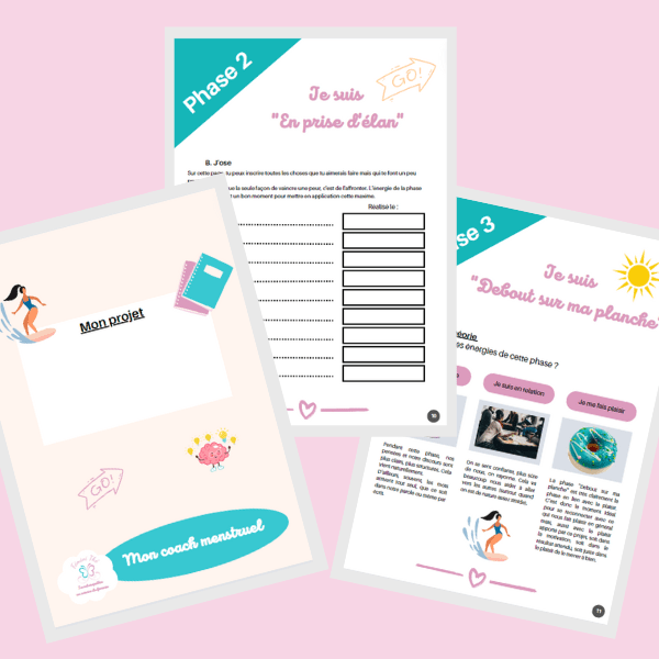- La phase des menstruations, que l’on appelle “Posée sur ta planche” dans la métaphore du surf, que l’on utilise dans le mouvement Kiffe Ton Cycle, te met dans une énergie de réflexion, de planification.